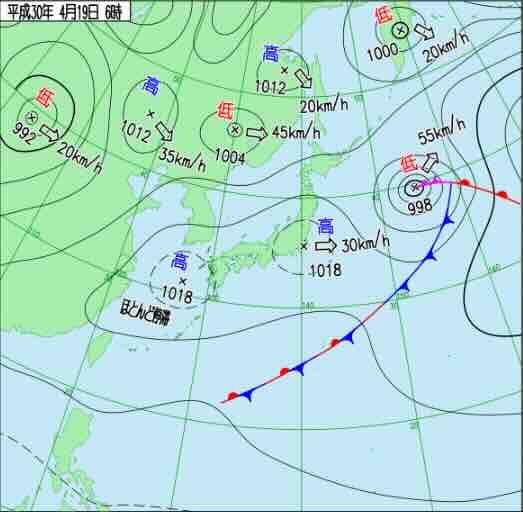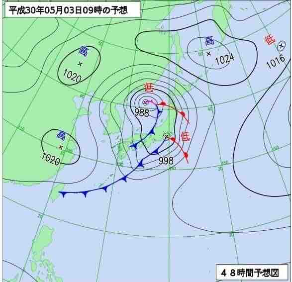 ・高気圧と高気圧の間が相対的に低気圧になり一時的悪天