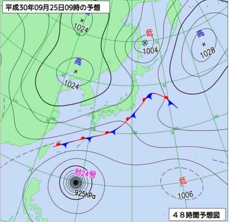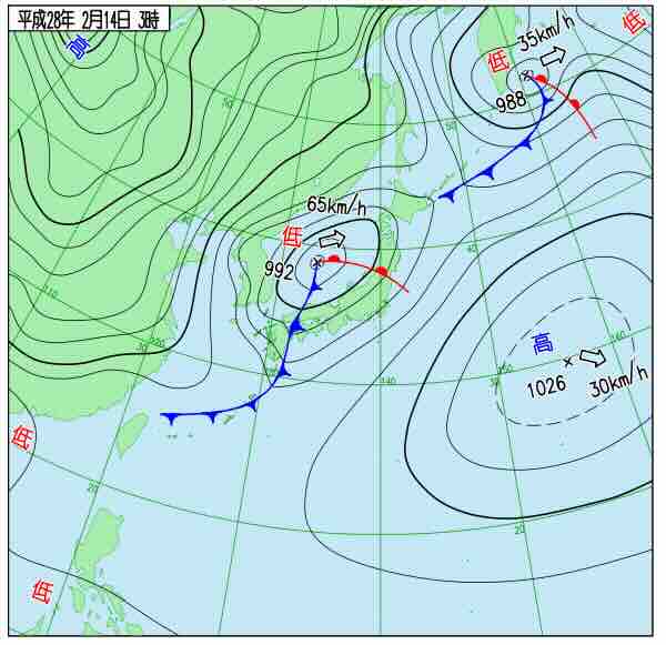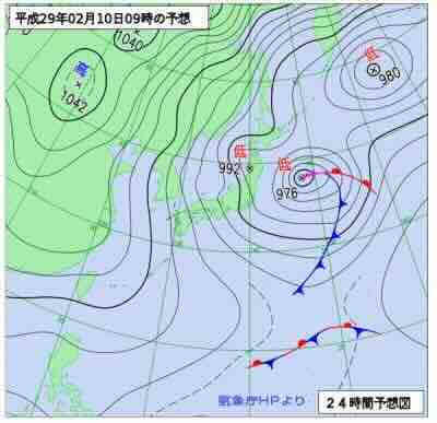 ・高気圧後面では太平洋側の山で悪天(冬型の逆の状況)