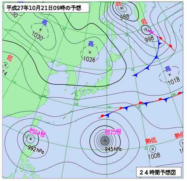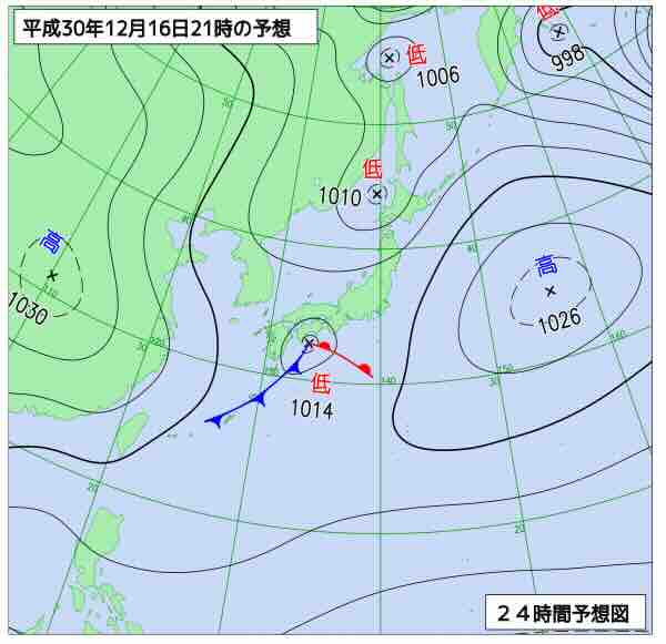 ・高気圧前面では日本海側の山で悪天(冬型と同じ状況)