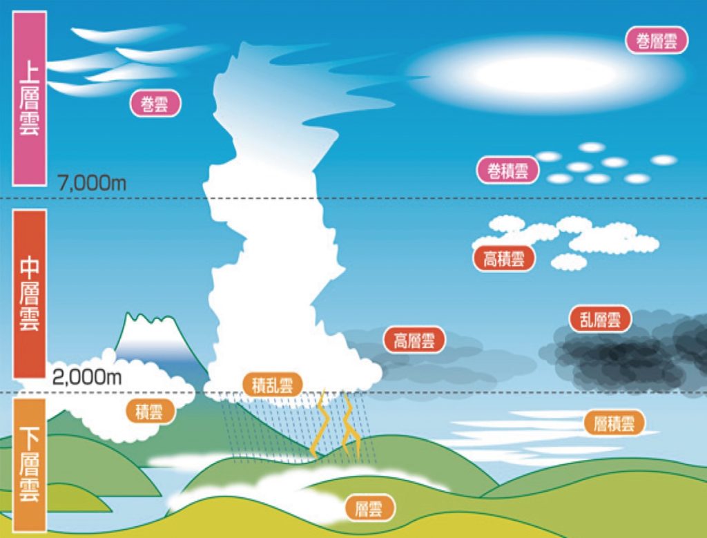 2.2.中層雲:2-7km/高〇〇→曇り/乱〇〇→雨、雪